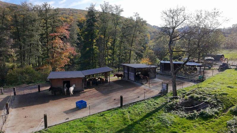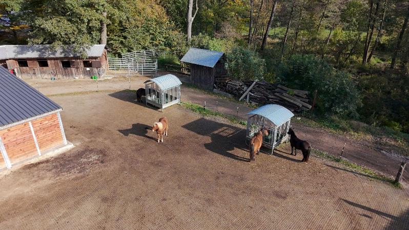 Die Anlage umfasst mehrere Einstellboxen, Freiflächen und alles, was für die Haltung, den Einstell- und Reitbetrieb erforderlich ist. In Absprache mit der Betreiberin kann man auch die benachbarte Reitanlagen eine 250-Meter-Ovalbahn, eine Reithalle oder ein Dressurviereck nutzen, ebenso wie den Anschluss an verschiedene Reitwege.